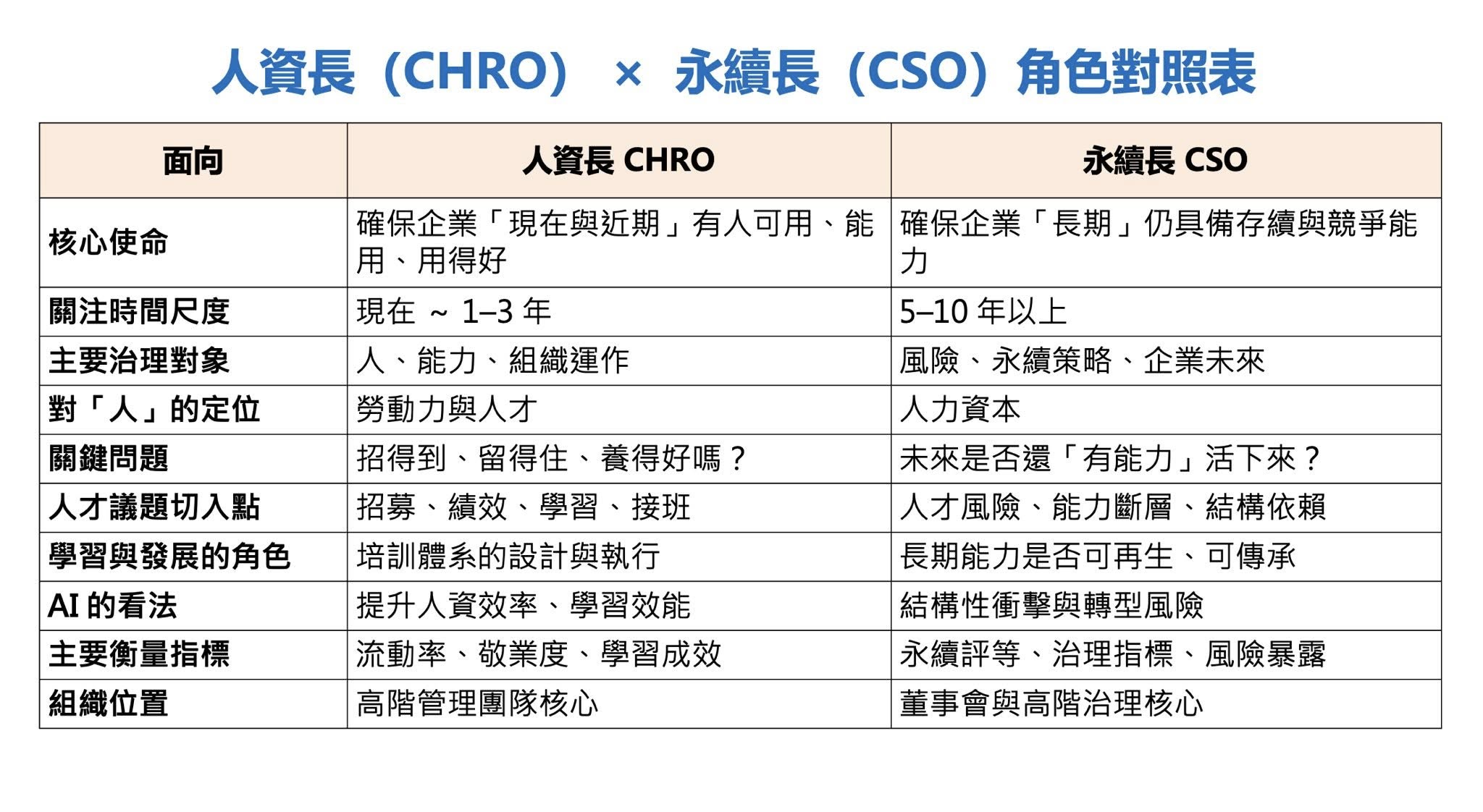 「人資長」與「永續長」的差別?